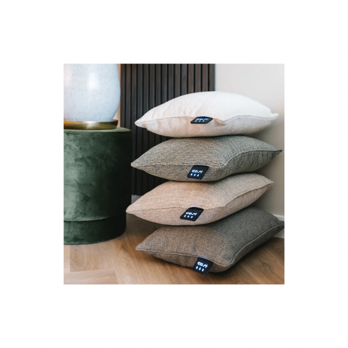 De Cosipillows beschikken over drie warmtestanden (low: 38°C, mid: 45°C, high: 55°C), die eenvoudig te selecteren zijn via de warmteknop op het kussen. Met een druk op de knop wordt het infrarood warmte-element geactiveerd, en dankzij de inbegrepen oplaadbare accu geniet je avondenlang van de heerlijke warmte van de Cosipillows.