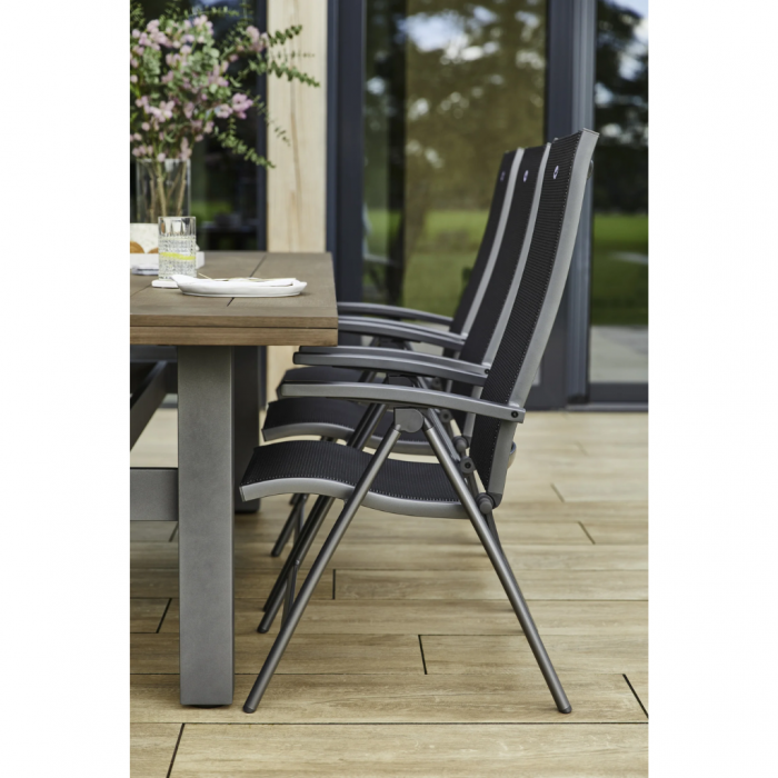 De Aruba standenstoel van Hartman is een tijdloze aanwinst door het strakke en stijlvolle design. Tuinstoel Aruba heeft een sterk aluminium frame wat de stoel lekker licht van gewicht maakt. De comfortabele textileen zitting is uitgevoerd in de kleur antraciet en is aan de hand van de leuning gemakkelijk te verstellen naar de gewenste stand. Dit zorgt voor een optimaal zitcomfort en maakt deze tuinstoel ideaal om ontspannen te kunnen tafelen. Als je bent uitgegeten zet je gewoon de rugleuning naar achteren en uitbuiken maar!