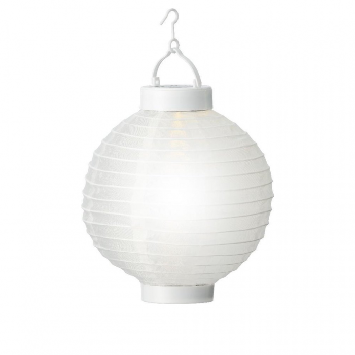 Wil je jouw tuin, balkon of veranda extra sfeer geven? De LED Solar lantaarn van Lumineo is een mooie keuze. Deze lampion met een diameter van 20 cm heeft een witte kleur en geeft warm wit licht, ideaal voor gezellige avonden buiten. Dankzij het meegeleverde haakje kun je hem eenvoudig ophangen waar je maar wilt. De lamp werkt op zonne-energie, waardoor kabels en stopcontacten niet nodig zijn. Het zonnepaneel bovenop laadt overdag op, en bij schemering begint de lamp automatisch te branden. Met een volle lading geniet je tot wel 6 uur van sfeervol licht. De lampion is gemaakt van duurzaam nylon, wat hem geschikt maakt voor buitengebruik.