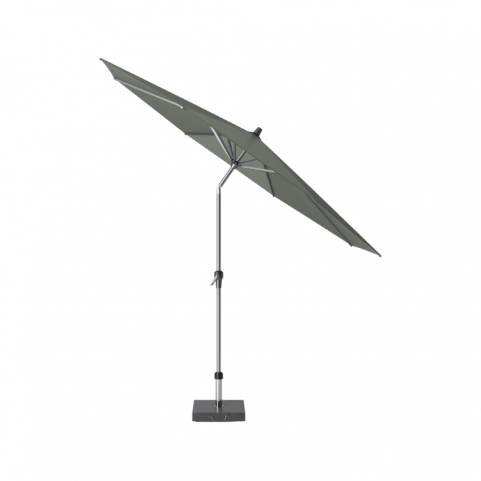 Platinum Sun & Shade middenstokparasol Riva Ø300 olijf. Design| Modern strak design, mede door doekspanners. Gebruiksgemak| Eenvoudig te openen en sluiten door easy-up draaisysteem. Handig op te bergen door stevige, deelbare mast. Schaduwvlak| Makkelijk te plaatsen, te verplaatsen en te kantelen om overal schaduw te kunnen creëren. Doekkwaliteit| Het 220 grams polyester doek in de kleur olijf blijft lang mooi en biedt een goede bescherming tegen de zon; tot 96% UV protectie. Het doek is voorzien van waterafstotende coating en doekspanners. Parasolvoet| De parasol wordt zonder voet geleverd. Wij adviseren deze parasol op een 40kg parasolvoet van Platinum Sun & Shade te plaatsen. Parasolhoes| Houd uw parasol als nieuw en dek deze af met een AeroCover ademende parasolhoes (art.nr. 7982) wanneer u deze langere tijd niet gebruikt.