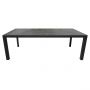 De Sol tafel van Royal Seasons, met een afmeting van 220x100x75cm, biedt plaats aan tenminste zes personen en heeft een aluminium frame met een keramisch tafelblad.