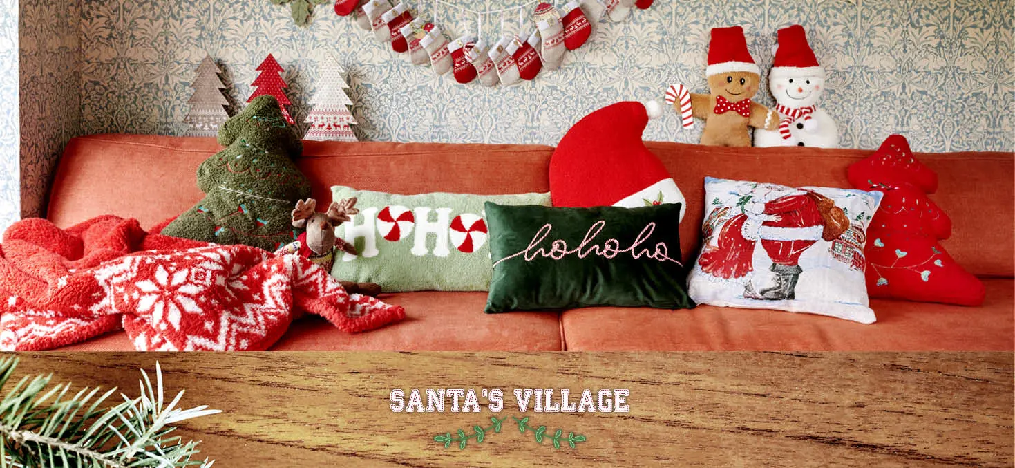 Het verhaal van Santa's Village draait om Mr. en Mrs. Claus en hun kerstelfen, die hoog in de bergen wonen. In hun kerstdorp creëren ze de mooiste kerstdecoraties en cadeaus. De nieuwe collectie binnen dit thema is geïnspireerd op handwerk en folklore motieven. Mr. en Mrs. Claus worden op een speelse manier tot leven gebracht in diverse hangers en figuren. Verder zijn er talrijke items die een knipoog geven naar het leven in de Alpen, inclusief de wintersport.