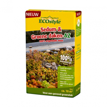 - Voorbegroeide Sedumtray, vervaardigd van gerecycled polyurethaan. De tray is voorbegroeid met een mix van 6-8 soorten Sedum. De Sedumplanten groeien op een substraatlaag in de tray.