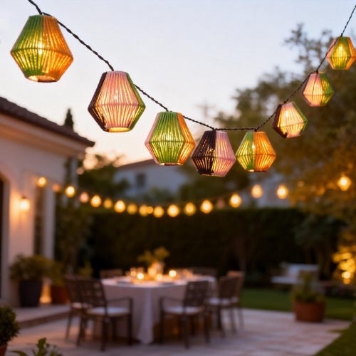 Sfeervol verlichtingssnoer in de tuin
