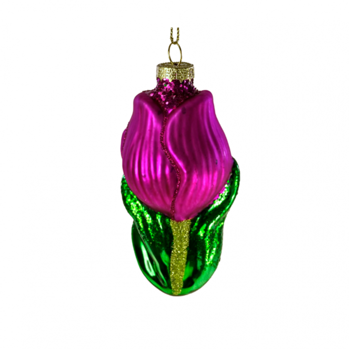 Dit kerstornament in de vorm van een tulp van Werner Voss geeft iets extra’s aan je kerstboom. De bloem is gemaakt van paars glas met een groene steel, wat het ornament een natuurlijke uitstraling geeft. Het is een mooie keuze voor wie graag bloemen toevoegt aan de feestversiering. Dit ornament is ook verkrijgbaar in andere kleuren, zoals geel en rood, zodat je kunt mixen en matchen naar eigen wens. Dankzij het stevige ophangoog kun je het eenvoudig aan takken bevestigen. Voeg deze tulp toe aan je kerstdecoratie en breng de warme uitstraling van bloemen in huis tijdens de feestdagen.