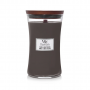 De WoodWick Sand & Driftwood Large Candle is gehuisvest in een stijlvolle glazen pot en heeft een houten lont die zorgt voor een zacht knisperend geluid terwijl de kaars brandt. De combinatie van dit rustgevende geluid, de subtiele geur en het warme kaarslicht creëert een ontspannen sfeer in elke ruimte.
